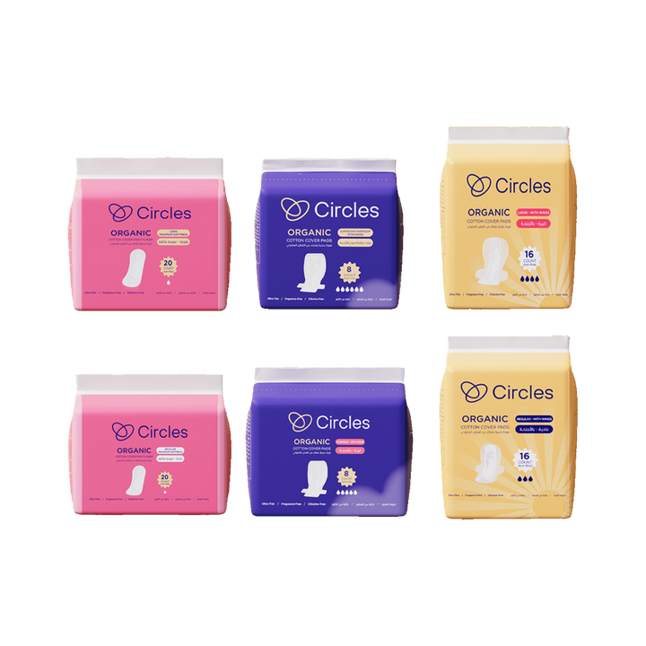 استمتعي مع دائرة الراحة من سيركلز بباكج شامل يغطي جميع احتياجاتك من أول يوم في الشهر حتى آخر لحظة. إنه باكج فوط صحية كامل مصمم ليناسب كل الأوقات، سواء كانت أيامك خفيفة أو غزيرة، نهارية أو ليلية.
