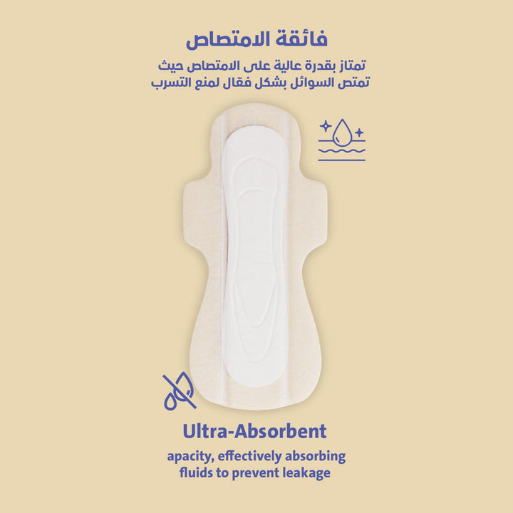 فوط صحية عالية الامتصاص تناسب التدفق الكثيف.